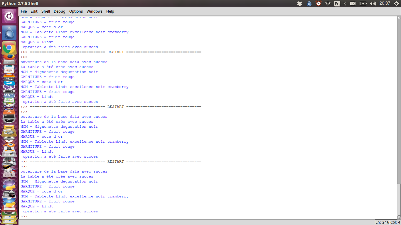 Pour cela, mes professeurs d'ISN, m'ont indiqué d'utiliser MySQL ou SQLite. J'ai opté pour SQLite sous python, je me suis aidé du cours suivant : http://python.developpez.com/cours/a...age_18#L18-A-2 , cependant j'ai quelques difficultés, en effet, j'ai ma base de donné, mais après cela, je ne sais plus quoi faire ( ci-joint une photo de mon début de travail). Mon objectif final est un "test" mais je ne vois pas vraiment en quoi SQLite pourrait m'aider