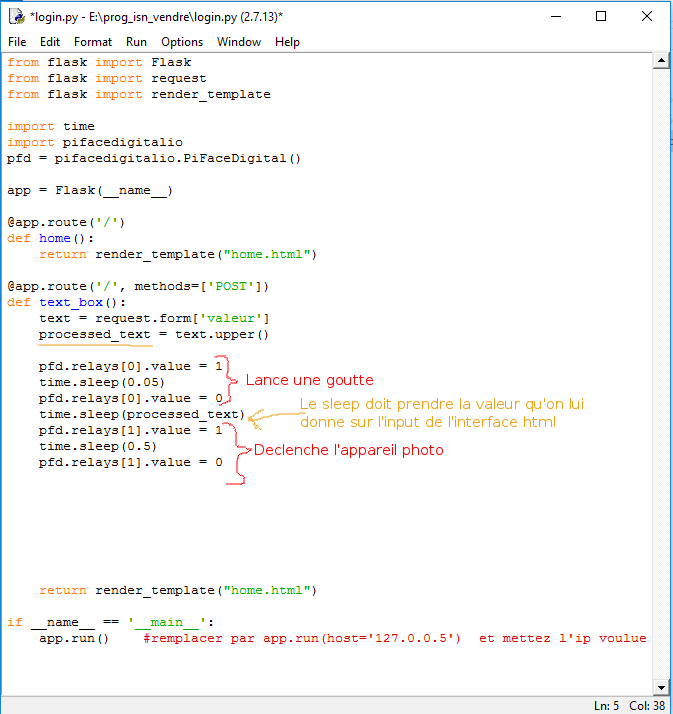 le problème c'est que lorsque je met la valeur de l'input que flask récupére donc la variable "processed_text" l'appareil photo ne se déclenche pas alors que quand je remplace par "0.15" sa prend la photo avec 0.15s donc sa fonctionne, il y a peut être une erreur au niveau de la syntaxe ?