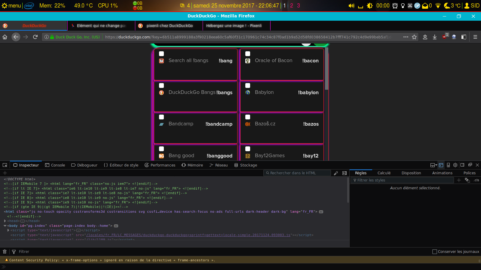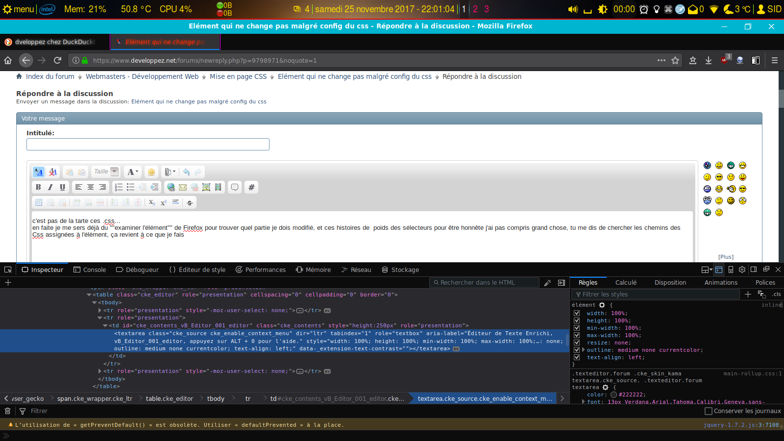 Si je fais le tri dans ton baratin, ça se résume à : "je n'arrive pas à changer la couleur (texte, fond) des éléments au FOCUS".