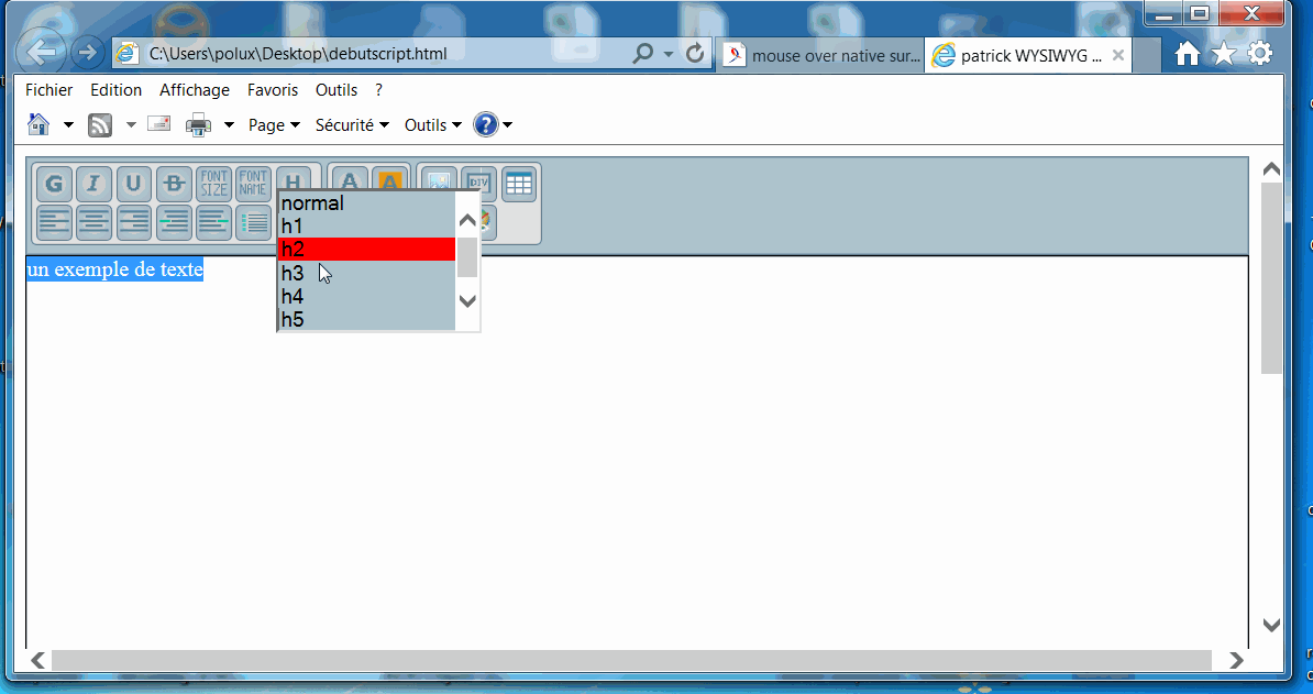 toujours pour mon WYSIWYG perso je rencontre une nouvelle bizarrerie
