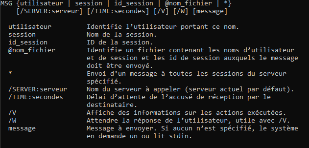 par exemple.Code:msg * /server:mon_ip message > C:\Users\ton_user\desktop\monfichier.txt