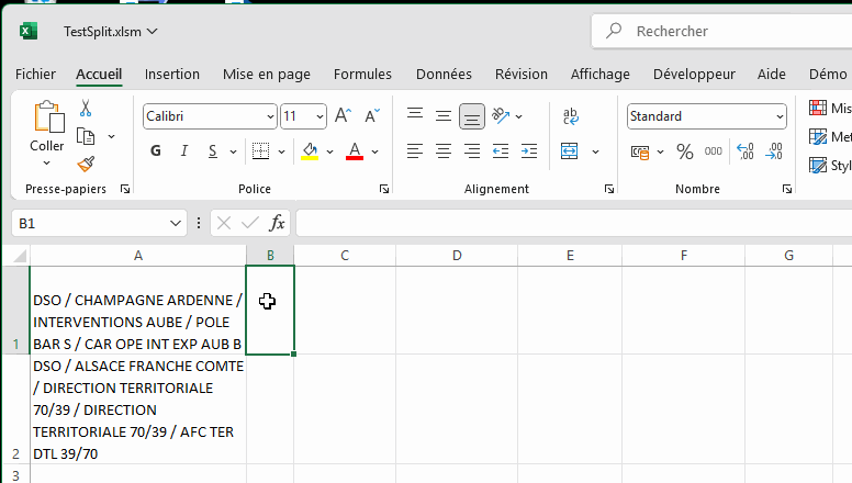 J'ai fait des tests comme l'ajout d'espaces OtherChar :=" / " mais cela ne marche pas comme attendu car je voudrais uniquement que le split se fasse quand on a un espace avant et après le caractère "/"
