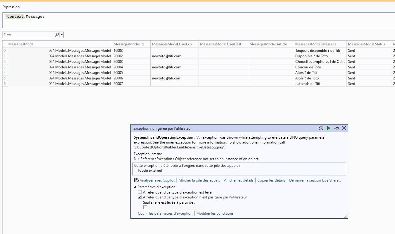 Quand c'est le DESTINATAIRE (en l’occurrence le propriétaire du produit) qui utilise la messagerie, chaque User_Exp est NULL.